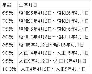 ①平成27年度に65歳、70歳、75歳、80歳、85歳、90歳、95歳、100歳になる方(65歳以上の方は平成30年度までに順番に定期接種の対象となります。)