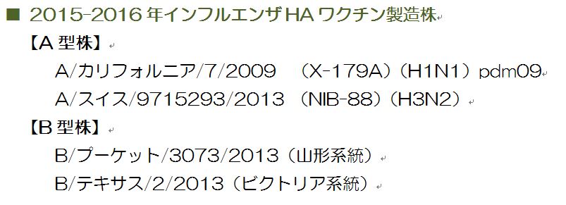 夏真っ盛りの時期ですが2015-2016年のインフルエンザ株が決定致しましたのでご案内致します。ワクチン