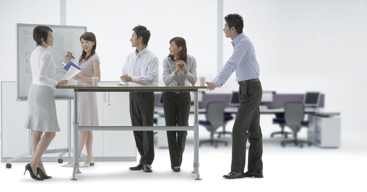 最近、外資系企業の日本本社の職場巡視をしていたら、社員の方が自由に集まって仕事ができるスペースに立って仕事ができるスタンディン・デスクが配置されていた。担当者の方の説明では。アメリカ本社の意向で日本にも導入されたという。電動で高さが自由に変えられる。
